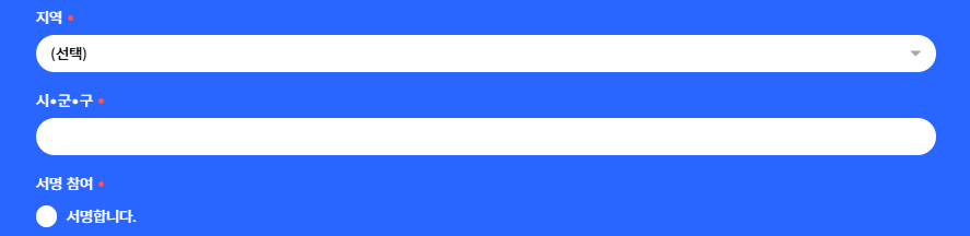 4. 지역, 시.군.구.입력, 서명참여 클릭