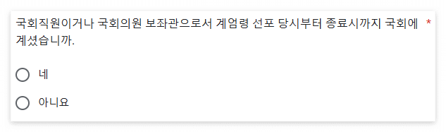 8. 보좌관으로서 계엄선포시 국회 머물러 있었는지 유무