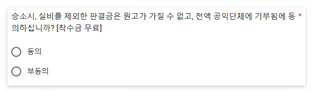1. 승소시 판결금 공익단체 기부 동의 유무