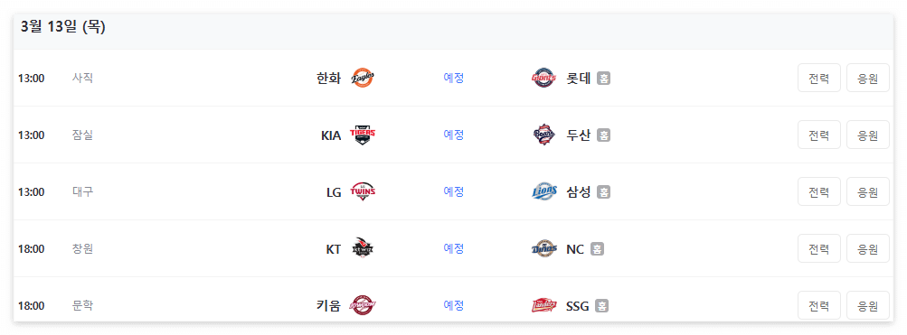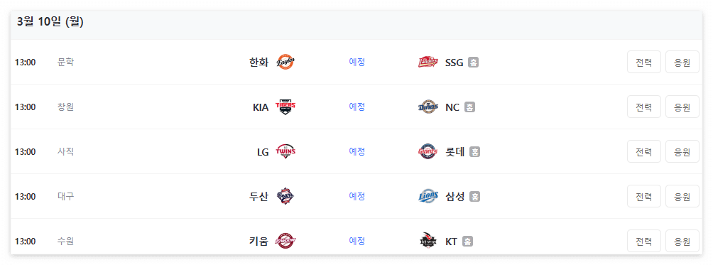 KBO 프로야구 시범경기 일정은 아래에 확인하실 수 있습니다.