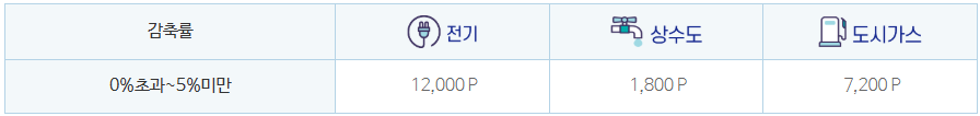 - 유지 인센티브 : 2회 이상 연속으로 5%이상 감축하여 인센티브를 받은 참여자가 이어서 0% 초과 ~ 5%미만 감축율을 유지할 경우 지급